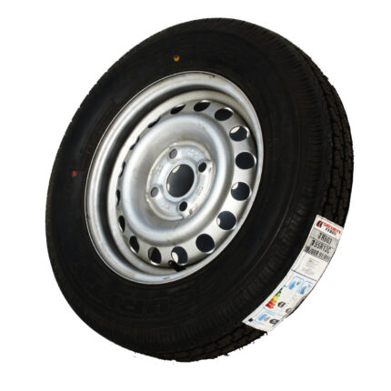 1 × Reservedekk - Sommerdekk + felg 13 tommer, 4 bolter, 155 R / 13 for tilhengere med aksler opp til 750 kg passer S200, S240 og S250 og P252 ubremsede og P292 ubremsede